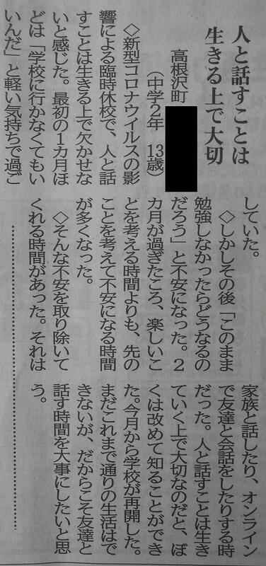 【下野新聞掲載】6月7日「10代の声」に本校生徒の投稿記事が掲載されていました。臨時休業中に思った内容です。とても素晴らしいです。