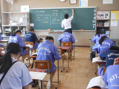 【授業参観】3年2組「数学」因数分解を学んでいました。今日は一斉クラスでの授業です。