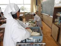 【給食メニュー】 パンは高根沢町産の「ブルーベリーパン」です。サラダにはアスパラやタマネギの野菜がたくさん入っていました。たこナゲットも美味しかったです。