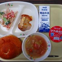 (今日の給食 米っ粉パン他) (お昼頃の空 灰色の雲)