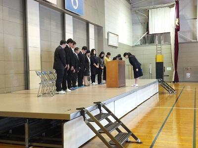 〇新任式・・・・・・体育館で、本校に着任される10名の職員の紹介をしました。