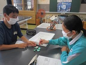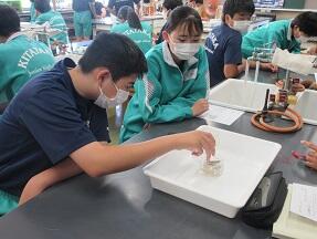ダニエル電池を作って、電気が流れる仕組みを考える授業が展開されていました。