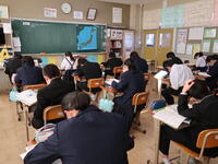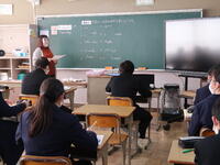 【授業参観】3年1組「数学」問題演習に取り組んでいます。入試での時間配分などの指導があり、生徒もうなずいていました。