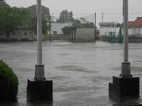 一面、水が浮いています 工事の関係で雨漏りが(体育館)・・・・・・・・