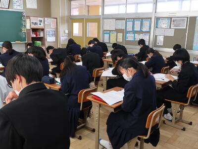 2年2組「数学」実力テストの過去の問題を解いていました。