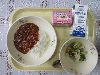 今日の給食は、卒業お祝いメニューで、ご飯、牛乳、ハッシュドポーク、花野菜サラダ、お祝いデザート(お米ケーキいちご味)です。高根沢町で生産された物は、にんじん、たまねぎ、トマト、米です。今日もたいへんおいしく頂きました。3年生は、今日が最後の給食になります。