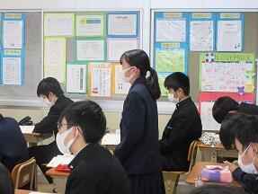 1組と同じ内容で授業が進められていました。板書がとてもわかりやすく、これまでの流れが一目でわかる授業でした。