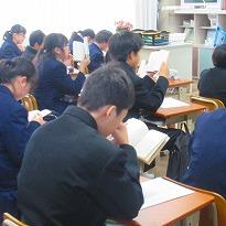 (朝の読書活動 15分間、担任も集中して読書をしています)