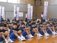 【選手壮行会】 放課後に「選手壮行会」を行いました。ユニフォームを着た3年生が堂々とした態度で整列し、大会に向けての豊富を後輩に伝えました。後輩も激励のエールを送りました。残り9日間の調整をしっかり行って大会に臨んでください。