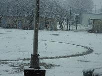 (校庭や駐車場、北側の道路 今日の積雪のようす)