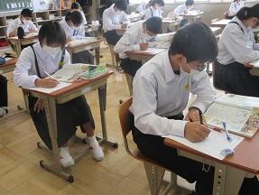 昨日の1組の授業と同じく、鑑賞を実施していました。みんな真剣に聴いてメモしていました、さすが3年生です。