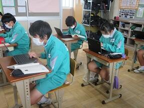 世界各地の衣食住についてまとめていました。みんなとても真剣に取り組んでいました。中学生らしくなってきました。