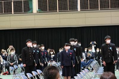 生徒退場、クラスごとに、担任・教職員・保護者それぞれに感謝の気持ちを表現して退場していきました。