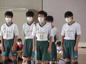 今日の帰りの会終了後、9日(金)から始まる総合体育大会に向けて、部活動壮行会を実施しました。美術部長からの激励の言葉の後に、各部活動の部長から決意表明がありました。最後に野球部と剣道部の部長の選手宣誓があり終了しました。3年生にとっては、最後の大会になります。悔いの残らない大会になることを願っています。でも真剣に取り組めば取り組むほど、どんな結果でも悔いは残るし、悔しさが強くなると思っています。