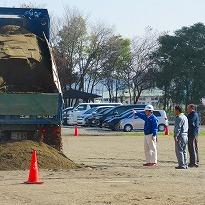 (元気あっぷハーフマラソンの受付 朝、生涯学習課職員来校)