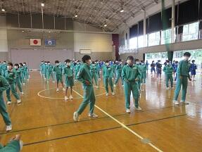 今日の6校時に、体育館で体育祭の全体練習を行いました。各クラスの団長・副団長の紹介があった後に、ダンスの要素を取り入れた準備運動(北中体操)の練習を行いました。自分たちの手で体育祭を作り上げていくことを期待します。