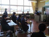 ●2年生は、「総合的な学習の時間」の参観をしていただきました。以前、体験したマイチャレンジをパソコンに打ち込み、プレゼンで発表しました。 グループごとに役割を決めて、脚本を作り発表していました。マイチャレンジの体験が、将来の夢や職業につながる生徒もいると考えています。