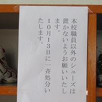 (体育館内下駄箱 無断で置いてあるシューズは処分します)