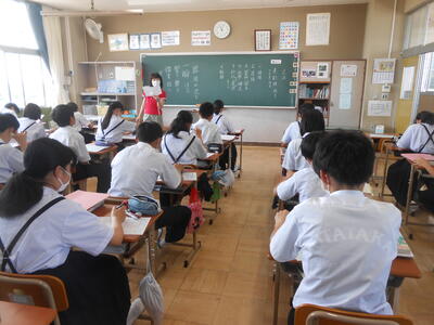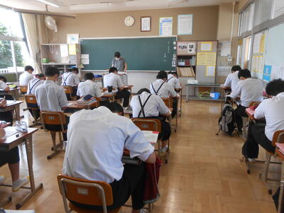 さて、コロナ対策の一つ、マスクの着用はこの暑さには耐えられません。登下校においてもマスクを着用している生徒もいますが、状況(暑さや周囲の状況等)に応じて調整してほしいです。