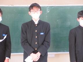 今日の朝の時間に、3年生が学年集会を実施しました。最初に生活習慣アンケートを実施し、その後合唱コンクルーでクラス紹介、指揮、伴奏を担当した生徒がふりかえりを発表しました。みんなとてもよいふりかえりでした。実施できて本当によかったと強く感じました。