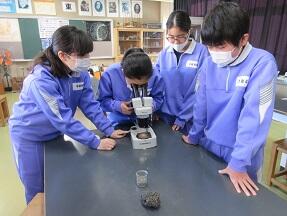火山灰の性質にについて、いろいろな観点から調べていました。