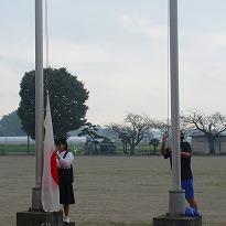 (生徒会役員 国旗の掲揚) (今日の給食 ひじきの煮物他)