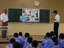 〇食指導・・・・・・今日の給食時、町学校給食センター栄養教諭の水井 浩子先生が来校し1年1組で「食に関する講話」をしていただきました。