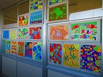 (北中 今年度のロゴマーク) (丸窓から 校庭を望む)