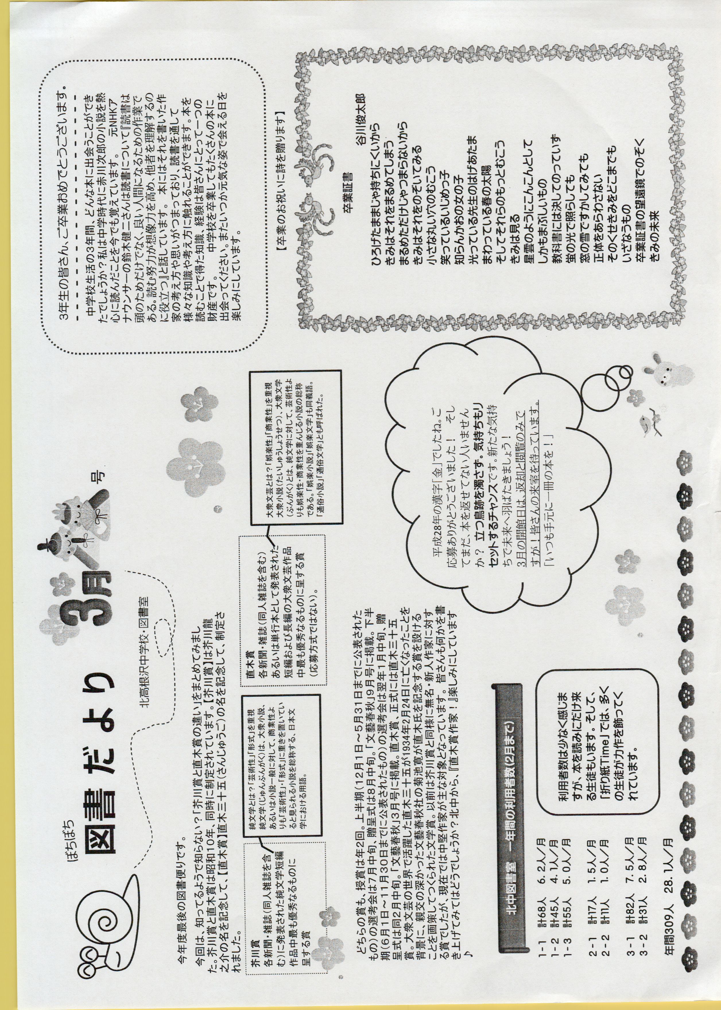 〇図書だより3月号・・・・・・今年度最後の「図書だより」です。ご覧ください。