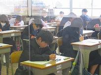 〇1年、2年は実力テスト・・・・・・①校時から⑤校時までを使い、3年生の県立高一般受検のシュミレーションになることを願い「実力テスト」を行いました。