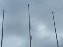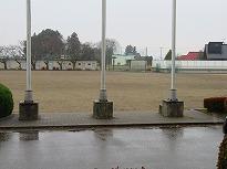 (役員3名で国旗・町旗・校旗を掲揚) (朝、男体山は雲で見えません)
