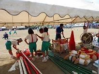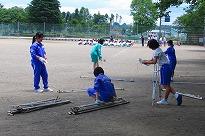 ●全体練習でもう一つ驚いたのは、体調不良や怪我等で見学していた5,6名の生徒が、関谷先生のHELPに応じて、テント3基の設営(テント建て)の手伝いをしてくれていたことでした。