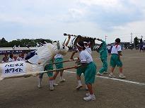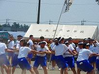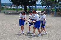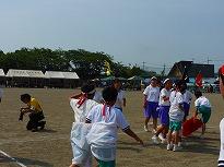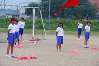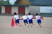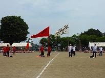 ●練習内容は、「開会式」の入場と整列、「開会式」から退場の練習を行いました。その後、綱引きの入退場、騎馬戦の入場と試技、退場の練習をしました。休憩後、紅白2会場に分かれて「応援合戦」の練習をして終了しました。