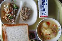 (今日の給食 焼きそば 他) (風があり高原の夏のようでした)