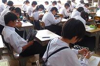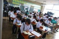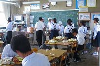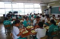 ******生徒たちは「そうか」「なるほど」とうなづきながら話しを聞いていました。 講話を聞きながら、食器を持って食事している生徒の割合調査してみると、10人に9人(9割)が食器を持って食事をしていることが分かりました。お家の中での食事の「しつけ」がよくできていることに驚きました。