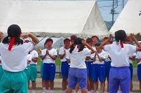 ●生徒たち全員の服装をチェックしましたが、体育着をハーパンの外に出している子は一人もいませんでした。集合がかかると、全員が集合場所に整列し、私語もほとんどないので、生徒の態度に私は驚きでした。
