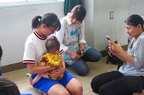 ●赤ちゃんを抱っこしたり、ミルクをあげたりしました。参加した母親や父親にとっても、北中生徒との関わりや会話ははじめての体験であり新鮮で嬉しく感じているようでした。