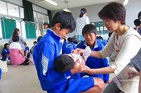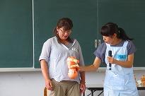 なかなかできない体験です。生徒たちは恥ずかしい表情を浮かべながら、お母さんのお腹を触る男子たちを見ることができました。