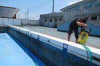 年小、年中、年長のクラスに分かれて、生徒たちは朝のお着替えから参加しました。どのクラスも「プール」で水遊びがあったので、生徒たちも園の先生と一緒に園児たちを水着に着替えたり、服に着替えたりなど、汗をかきながら仕事をしていました。