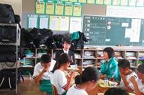 (各クラスで朝、水筒を集めています)