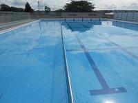 【朝の様子】 プールもきれいになり、間もなく水を入れます。昨年度、新しくしたプールはとてもきれいです。