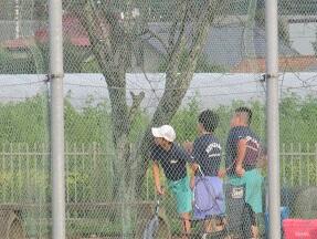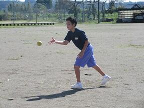 ソフトボールの導入の授業が展開されていました。こちらもなかなかバットに当たらないようでしたが、楽しく取り組んでいました。