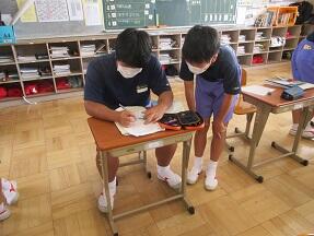 近畿地方について、タブレットを使ってパンフレットづくりをやっていました。みんなとても真剣に取り組んでいました。