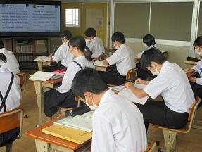 本文を理解する授業が展開されていましたが、少人数で実施しているため細やかに指導がなされていました。