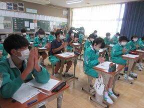 午前中の4時間で、無事期末テスト1日目が終了しました。どのクラスもほっとして給食の時間になりました。(前向きで黙食です。ちょっとさみしい感じがしますが、仕方がありません。明日の期末テスト2日目に向けて、あとひと頑張りです。