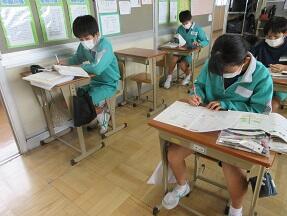 国語の漢字プリントをやっていました。みんな集中して取り組んでいるので、物音一つ聞こえてきませんでした。