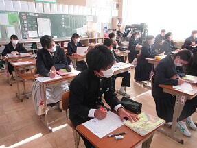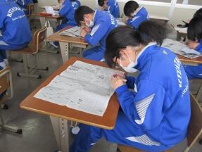 私立高等学校の過去問に取り組んでいました。本番も近いので、みんな真剣に取り組んでいました。