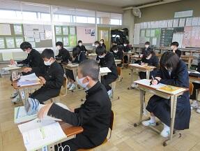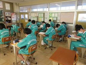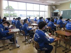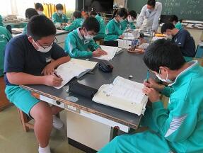 プリントの問題の解き直しをしていました。みんな教科担任の説明を真剣に聞いていました。