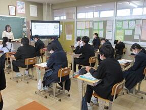 終身雇用や年功序列賃金、能力主義、成果過ぎなど雇用についての学習が展開されていました。これからの世の中を渡っていく生徒たちには、本当の実力、能力を身に付けてほしいと感じました。