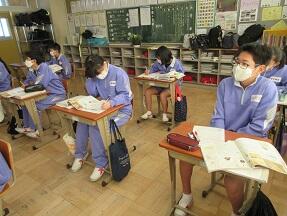 今日の2校時に2年3組の授業を見ているとき、学習プリントを配付する場面がありました。欠席生徒のところはどうなるのかと見ていると、前の席の男子がしっかり折って、しかも机の中もちょっと整理して入れていました。こころがちょっとあたたかくなりました。